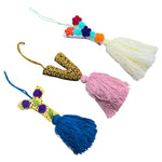 Add a unique touch to your bags, backpacks, cars, or even use as a creative bookmark. Our handwoven tassels and pompoms are the perfect accessory to bring a splash of color and personality to your everyday essentials.