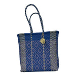 Blue, Silver & Purple Details Medium Tote | Handwoven Recycled Bags | Be Praia