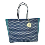 Royal Blue, Turquoise & White Large Tote | Handwoven Recycled Bag | Be Praia