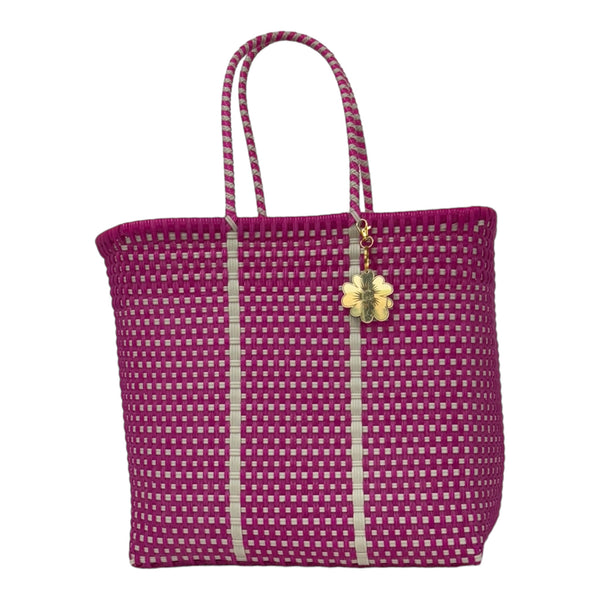 Fuschia & White Medium Tote | Handwoven Recycled Bags | Be Praia