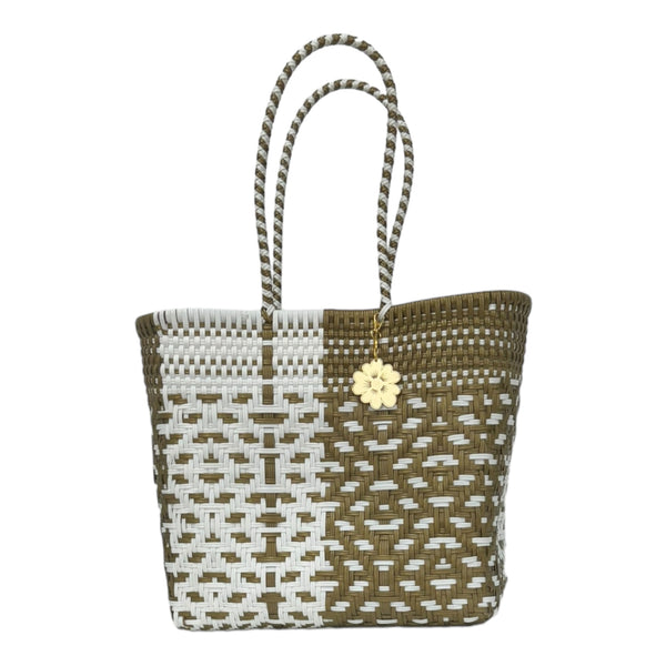 Gold & White Medium Tote | Handwoven Recycled Bags | Be Praia