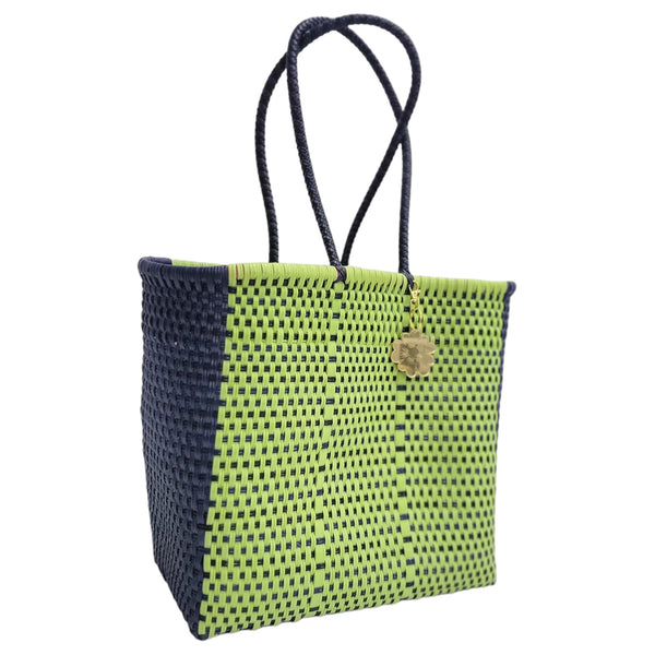 Navy Blue & Lime Medium Tote | Handwoven Recycled Bags | Be Praia