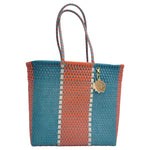 Orange, Turquoise & Cream Details Medium Tote | Handwoven Recycled Bags | Be Praia
