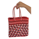 Red with Black & White Details Mini Tote | Handwoven recycled bags